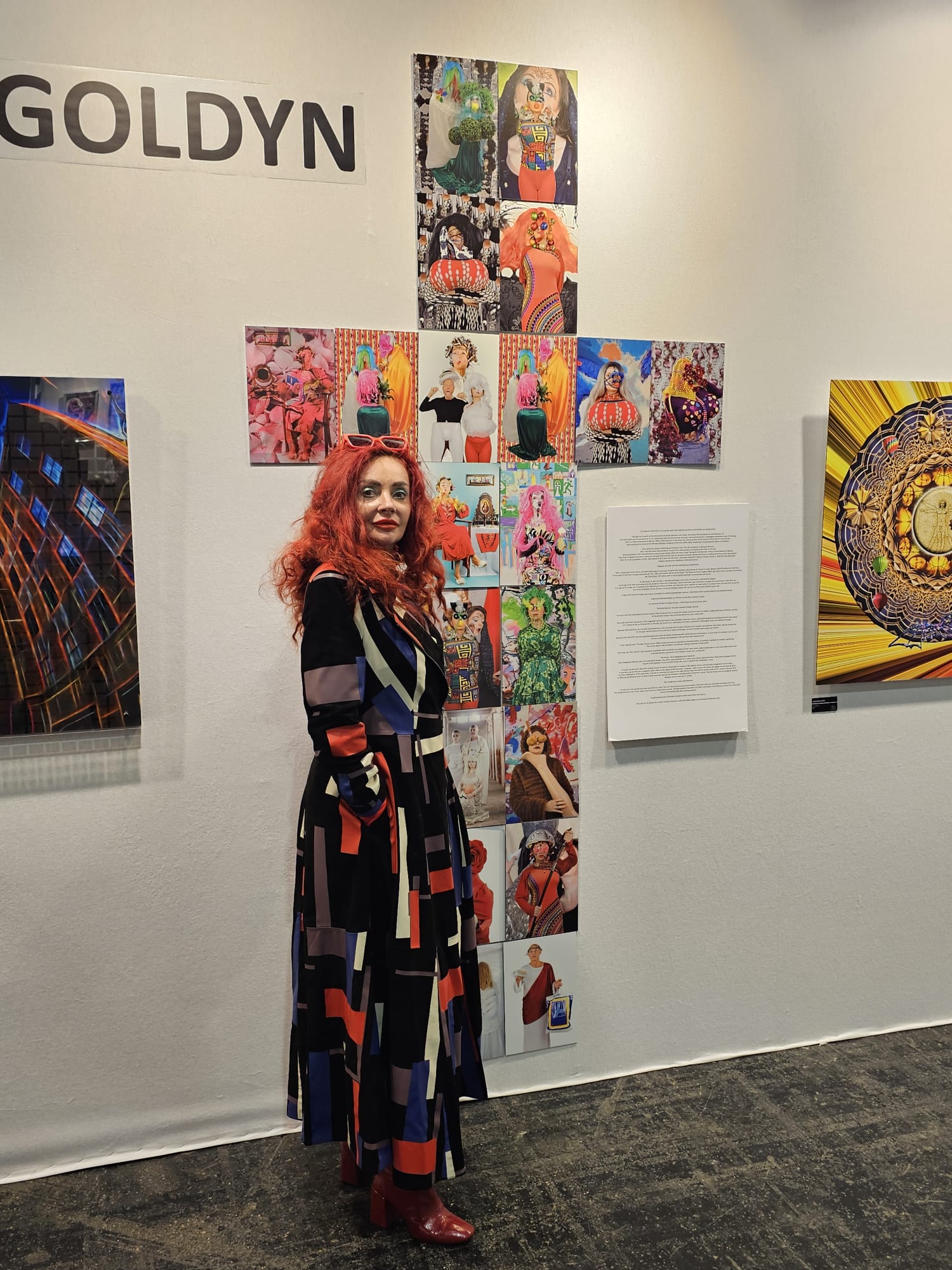 JUNIA is a photographic series that explores identity as a performative and transformative process. Through staged portraiture, vibrant color compositions, and theatrical costuming, GOLDYN constructs a symbolic visual universe in which characters emerge as contemporary archetypes. Positioned between fashion imagery, performative art, and conceptual portrait photography, the works investigate how identity is continuously shaped through gesture, appearance, and narrative. Installed as a cross-shaped constellation, the series transforms portraiture into a spatial experience, inviting viewers to navigate a multiplicity of identities and symbolic presences.