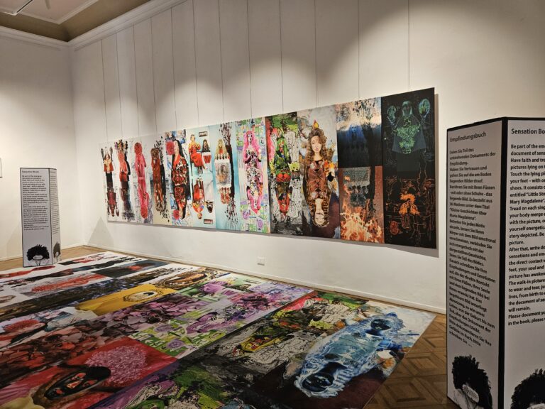 During the exhibition the images gradually become dirty, worn and damaged. This transformation is intentional and part of the artistic concept. The images slowly deteriorate and begin to disappear.