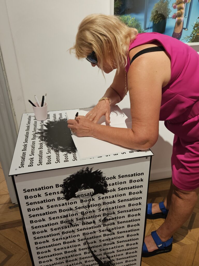 Visitors are invited to record their feelings and sensations in the “Sensation Book”. They describe emotional reactions such as hesitation, empathy, curiosity, discomfort or reflection while walking across the images.