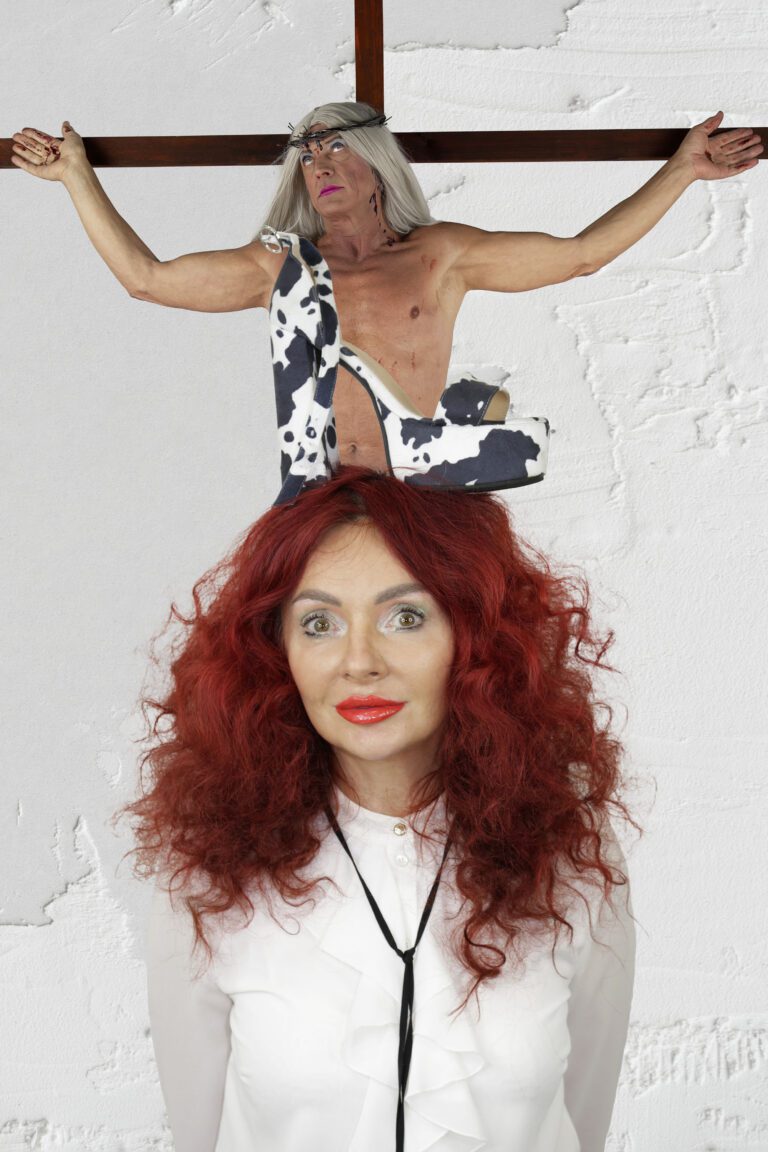 RITUALS OF POWER is a photographic series in which Goldyn explores the symbolic language of authority, ideology and belief. Through performative self-staging and carefully constructed scenes, the artist combines political symbols, religious references and elements of absurdity.